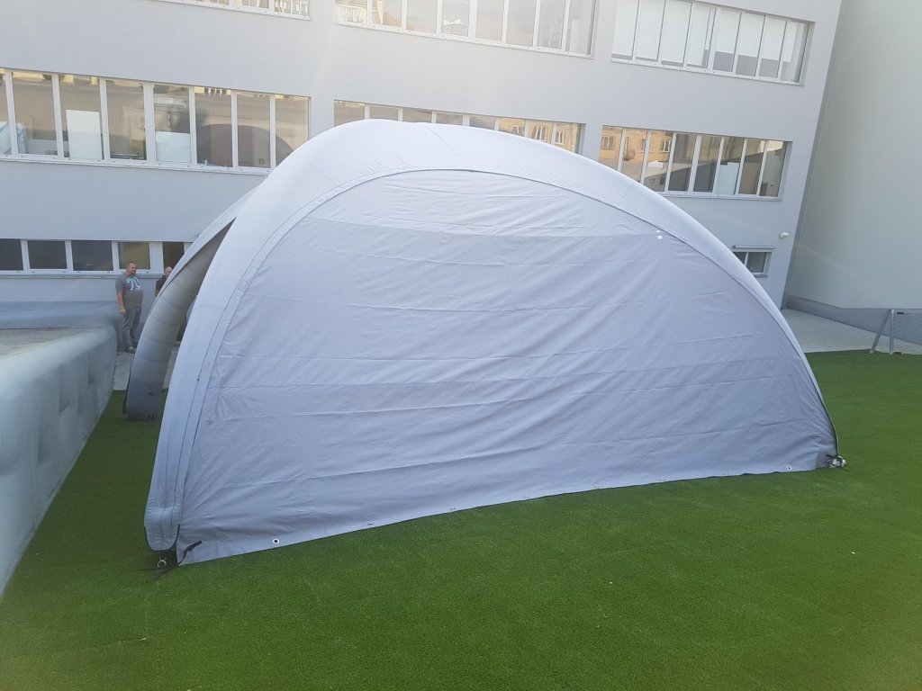 Použitý šedý demo stan z půjčovny pro vaše menší eventy.